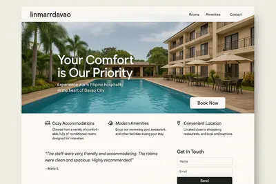 With Davao being a key tourist destination known for its natural beauty and vibrant culture, leveraging this domain could significantly enhance visibility and brand recognition. Prospective businesses could use this domain to showcase their accommodations, highlight amenities, and promote special offers. The target audience would be travelers seeking comfortable and reliable lodging in Davao, ranging from business professionals to vacationing families. The domain's clear geographic and brand identity offers a solid foundation for building customer trust and loyalty in the competitive hospitality market.